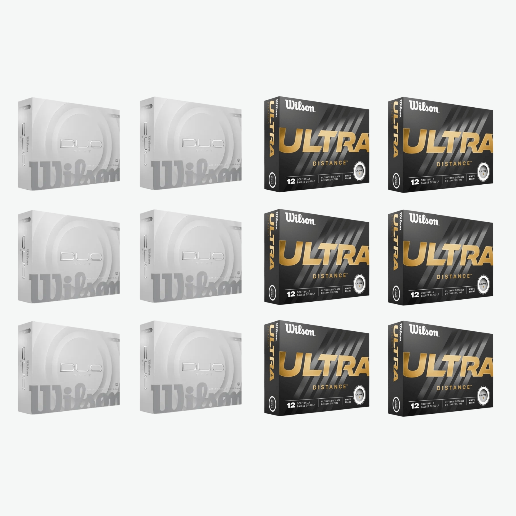 Pakken med maksimal længde og komfort. Wilson Ultra for ekstra distance, og Duo Soft for blød føling – ideel til firmaevents og golfdage.